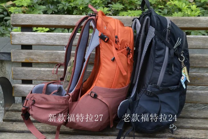 不同在于,新款27L的两侧口袋比老款24L的更深,可以存放水壶、登山杖或者三脚架等,更能满足单日户外出行需求,避免了老款24L经常超负荷出行的尴尬。