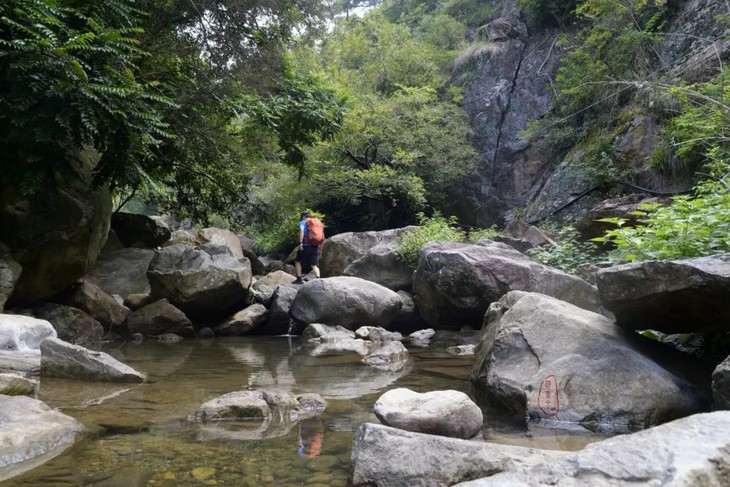 在秋老虎的炙烤下,山林间徒步不久便满身大汗。不过,这次出行中新款27L背包的表现相当出色,背部始终保持透气,没有感到闷热。在溯溪路段的跳跃和攀爬中,它也提供了良好的支撑性和稳定性。