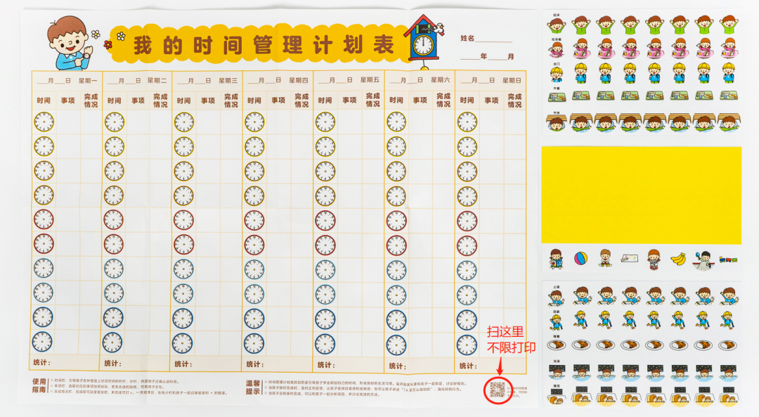 玩具书还贴心赠送1张时间管理计划表+2张日程管理贴纸+1张奖励贴纸,绝对是每个处于幼小衔接家庭的福音!