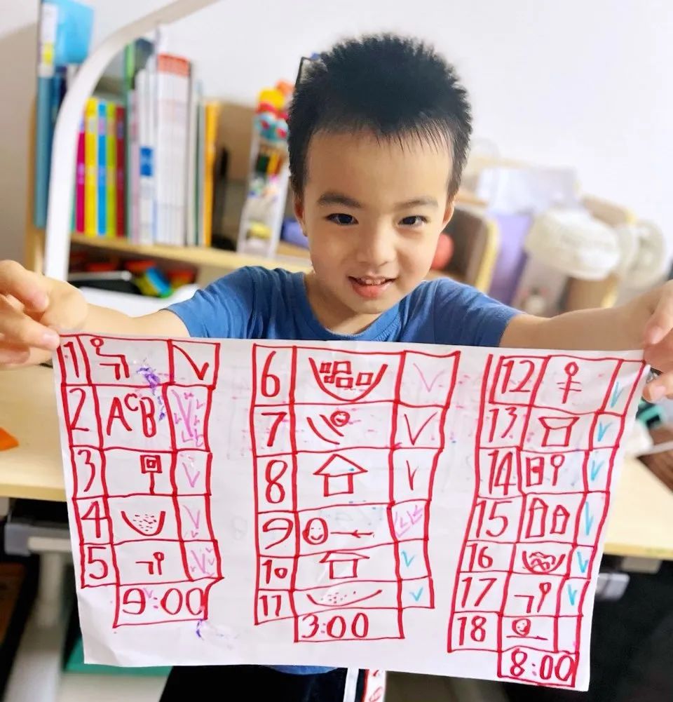 娃从重度拖延症儿童摇身一变时间管理达人,还自己做了日程安排表。