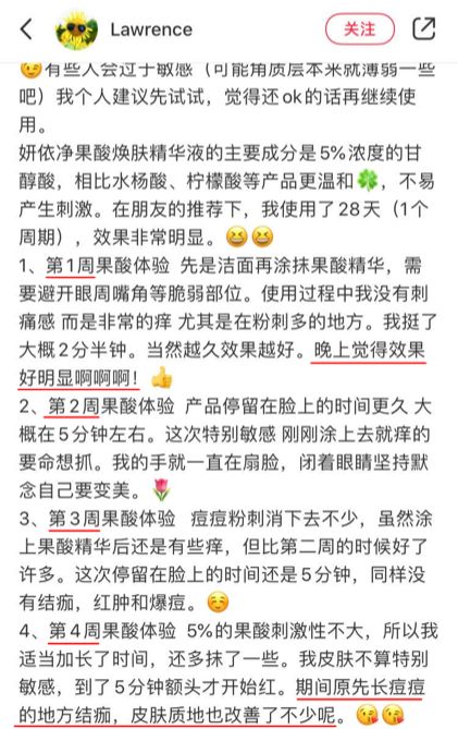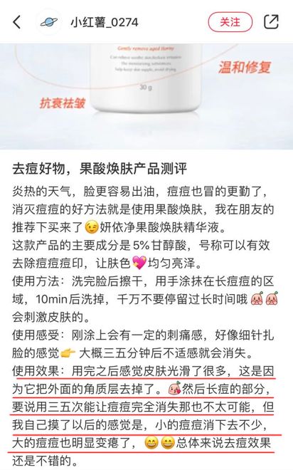 在小红书、天猫上,妍依净果酸精华液得到了很多网红博主的喜爱。
