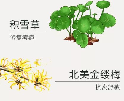 妍依净果酸精华液为了让祛痘效果更出色,成分里添加了多种植物精华,积雪草提取物、北美金缕梅提取物、海藻糖和库拉索芦荟叶汁粉等。