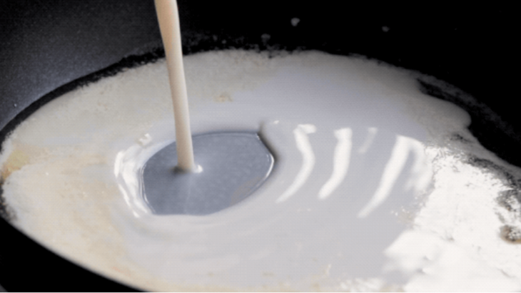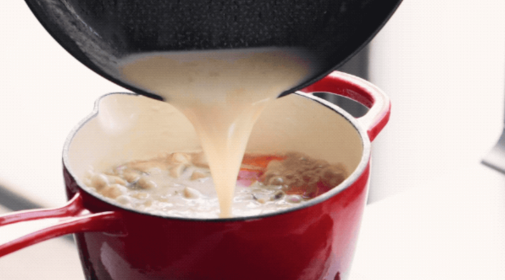 5.另取一锅,切约20克黄油小火慢慢融化,倒入无糖「扁桃仁效果」搅拌后将其倒入炖锅,与其它食材均匀混合