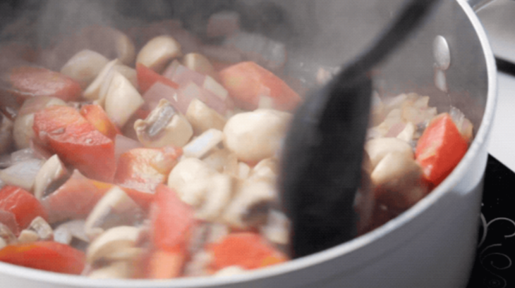 3.锅中底油加入洋葱、蘑菇、胡萝卜翻炒至洋葱变色