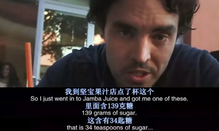 (纪录片中,Gameau在饮品店,随便点了一杯常见果汁,查了下含糖量,竟然34茶匙)