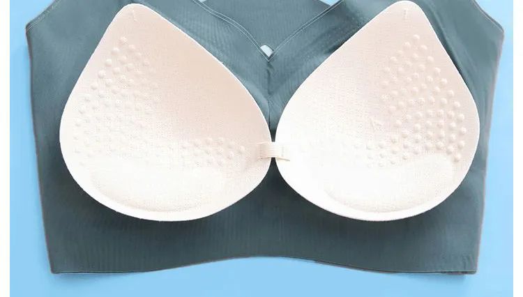 胸垫是立体QQ乳棉设计水滴型杯垫,上面布满了按摩颗粒,有助于缓解疲劳,让胸部更放松舒服。