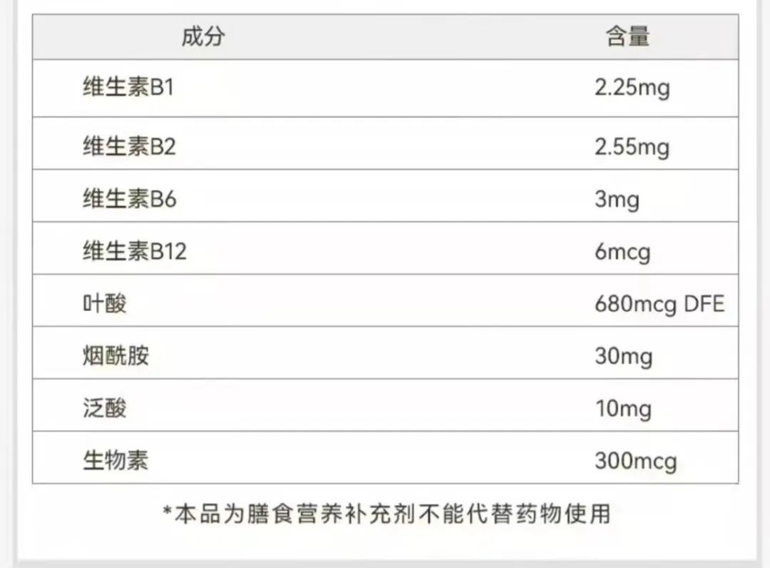 和其他的维生素B不一样👉它是由B1、B2 、B6 、B12、叶酸 、泛酸 、烟酰胺 、生物素8种B族组合而成👍