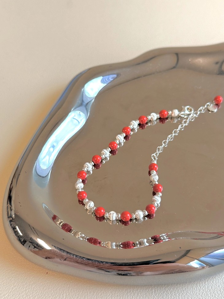 纯红色我hold不住,但这条手链把复古典雅的朱砂小珠珠和bling bling的银色小珠珠间隔搭配,时髦感一下子拉起来了,显得特别又精致!