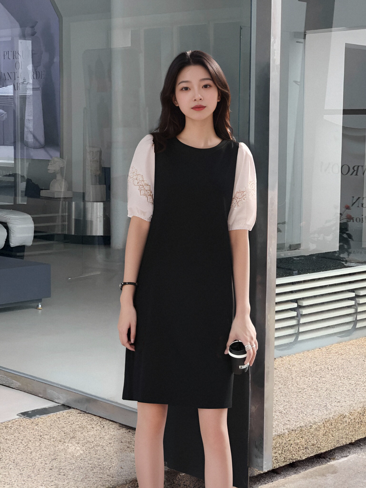 轻雅名媛风!松弛感撞色拼接连衣裙