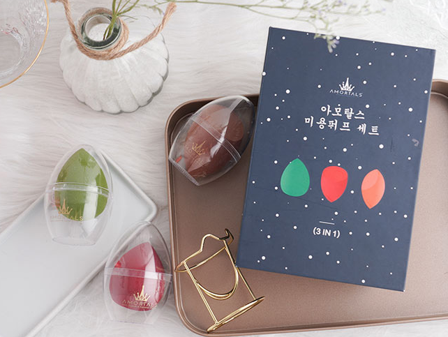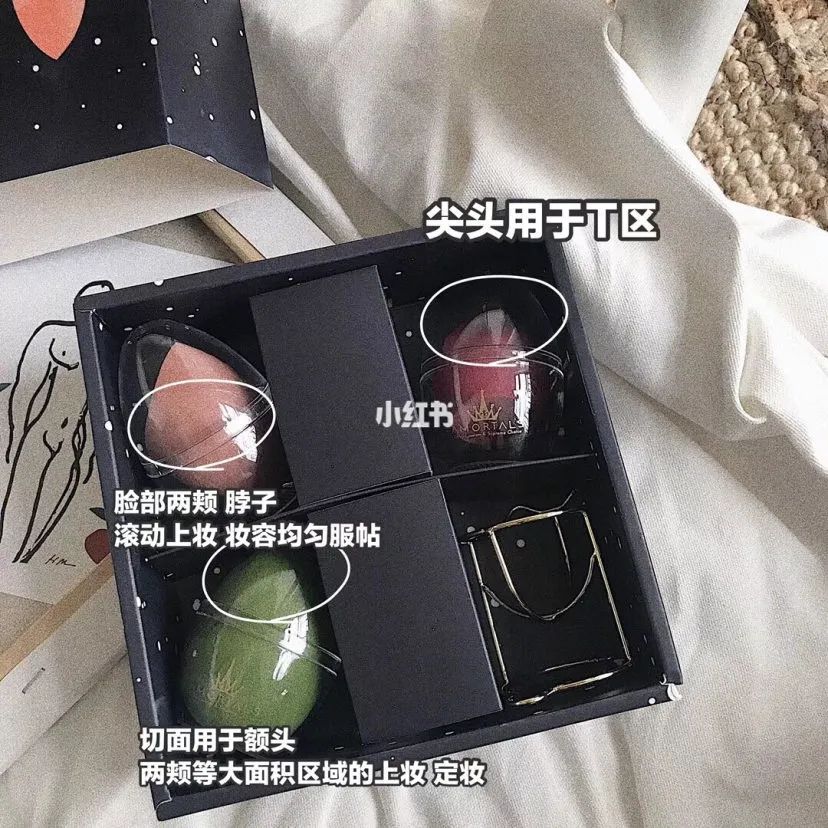 尔木萄这款美妆蛋不仅颜值高,还是套盒,一盒有三个蛋可以满足不同妆容需要,还附赠了一个蛋架哟!