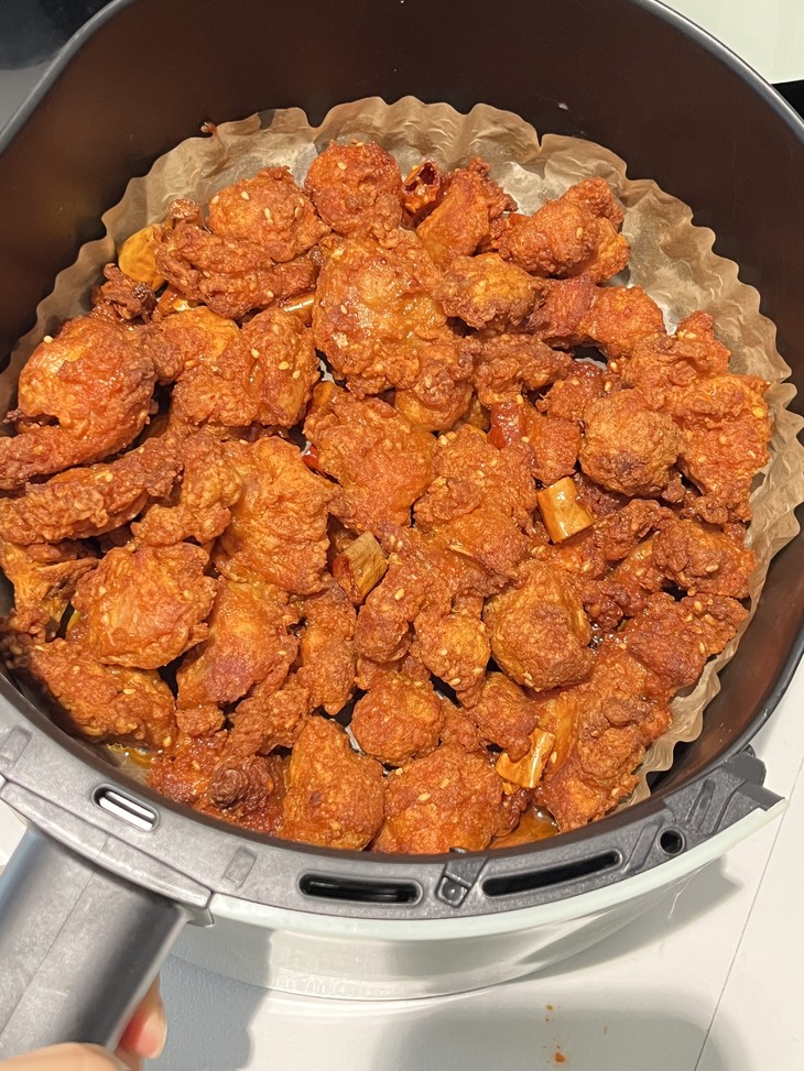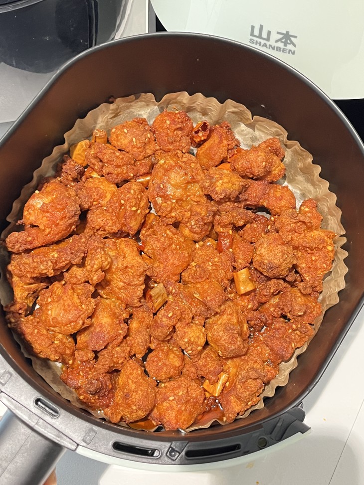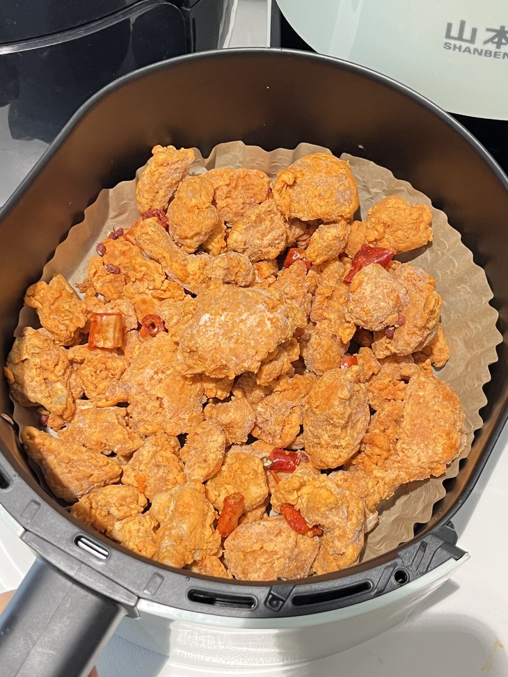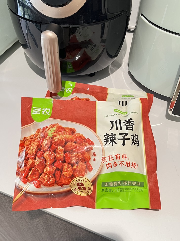 辣子鸡拆袋倒入炸锅,200度18分钟左右,中途翻一次面,搞定👌!!