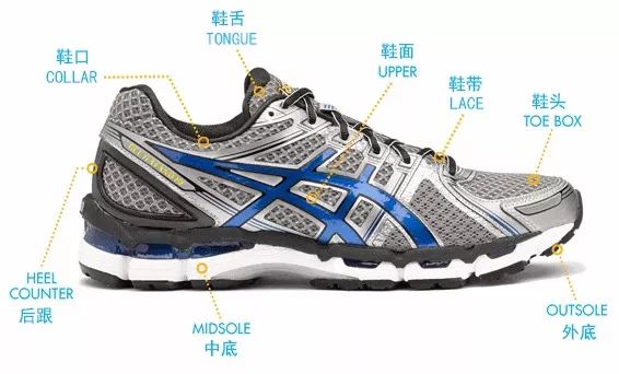 以一双跑步鞋为例,我们来看看鞋子的基本构造: