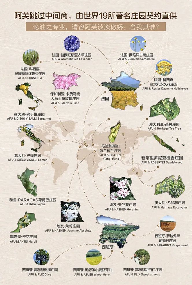 阿芙作为IFA在中国的企业会员,与全球19所庄园合作,在以油养肤这条道路上深耕20年。