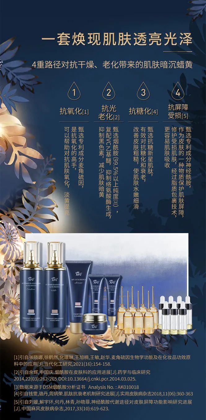 阿芙家的石榴籽护肤套盒就是针对亚洲人这样的皮肤问题进行专研,新手也不会翻车。