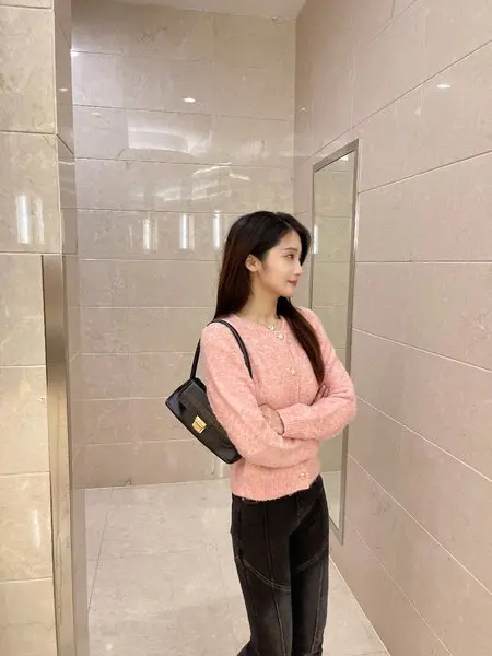 短款设计非常修饰身材,粉色更显气质。面料舒适柔软,非常适合日常穿搭。物流速度快,包装严实,没有任何损坏。