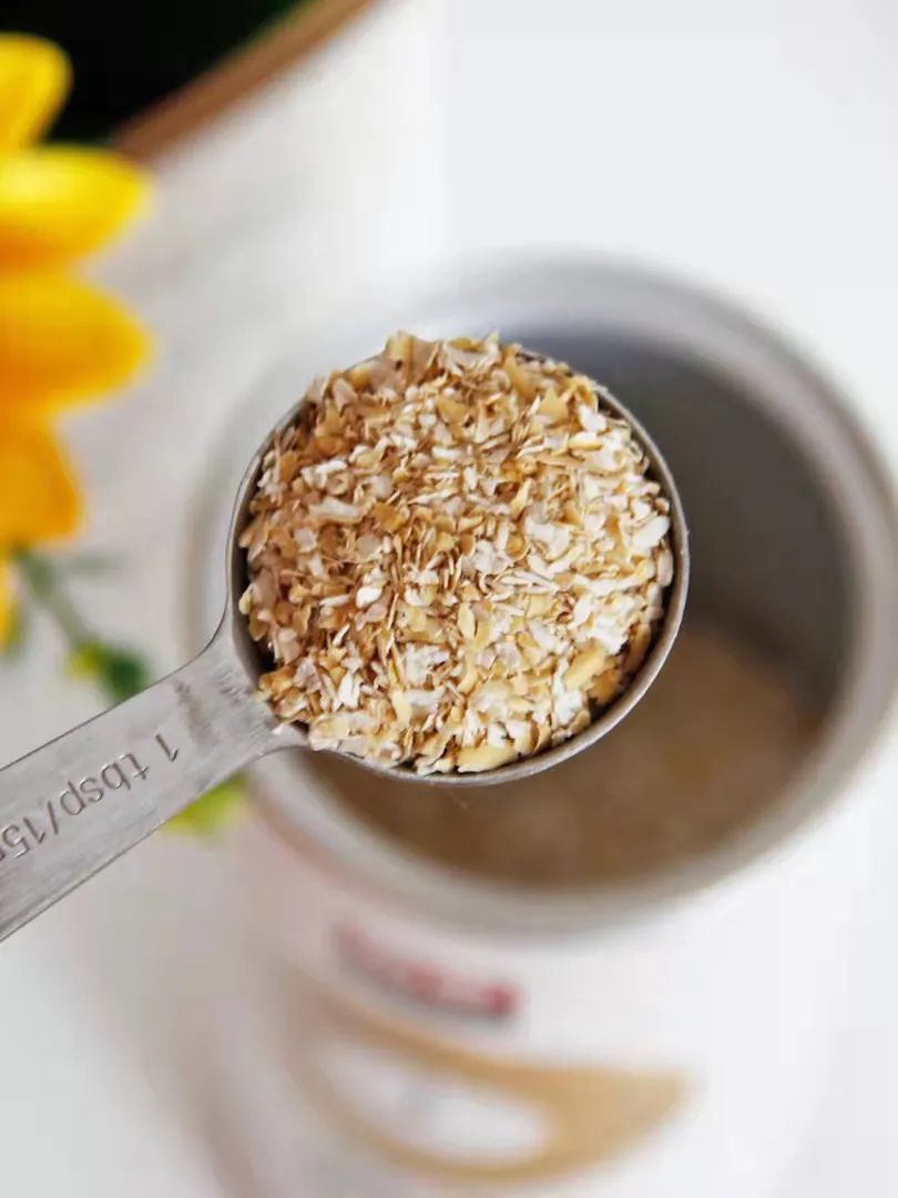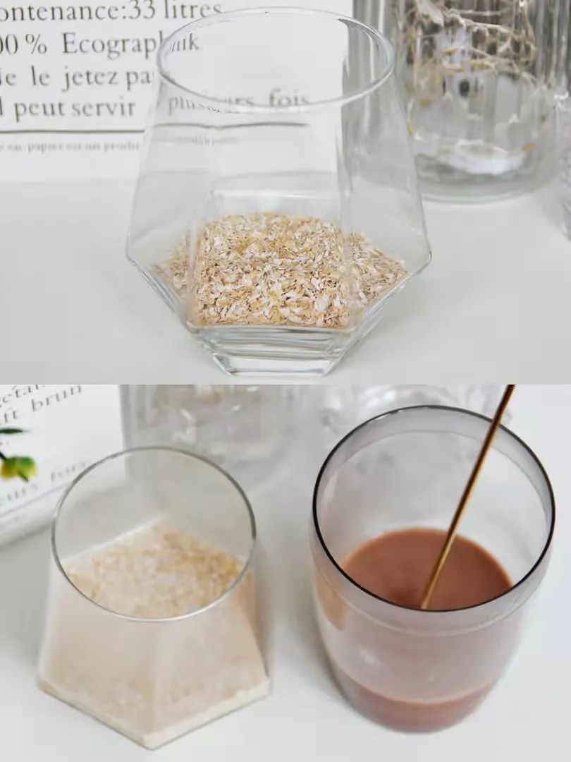 ③ 分别加开水,成品杯中没过燕麦麸皮就可以了,静置5分钟,把麸皮泡开;