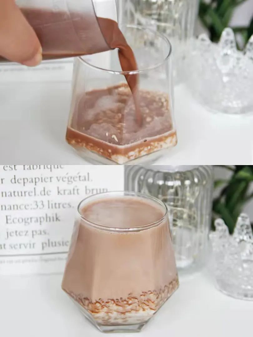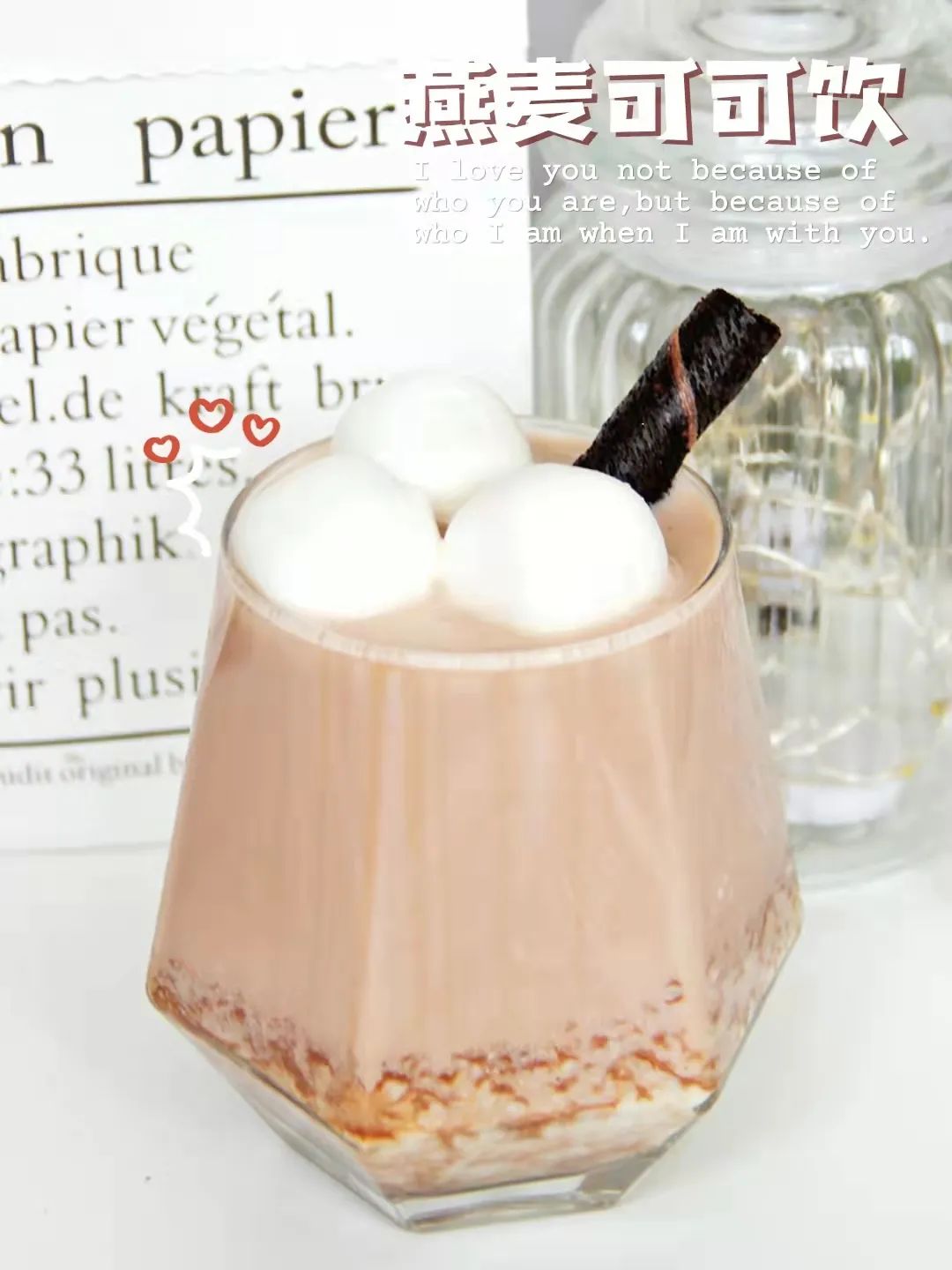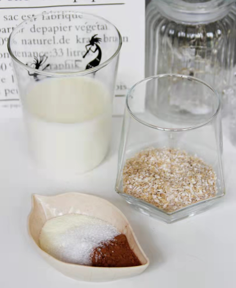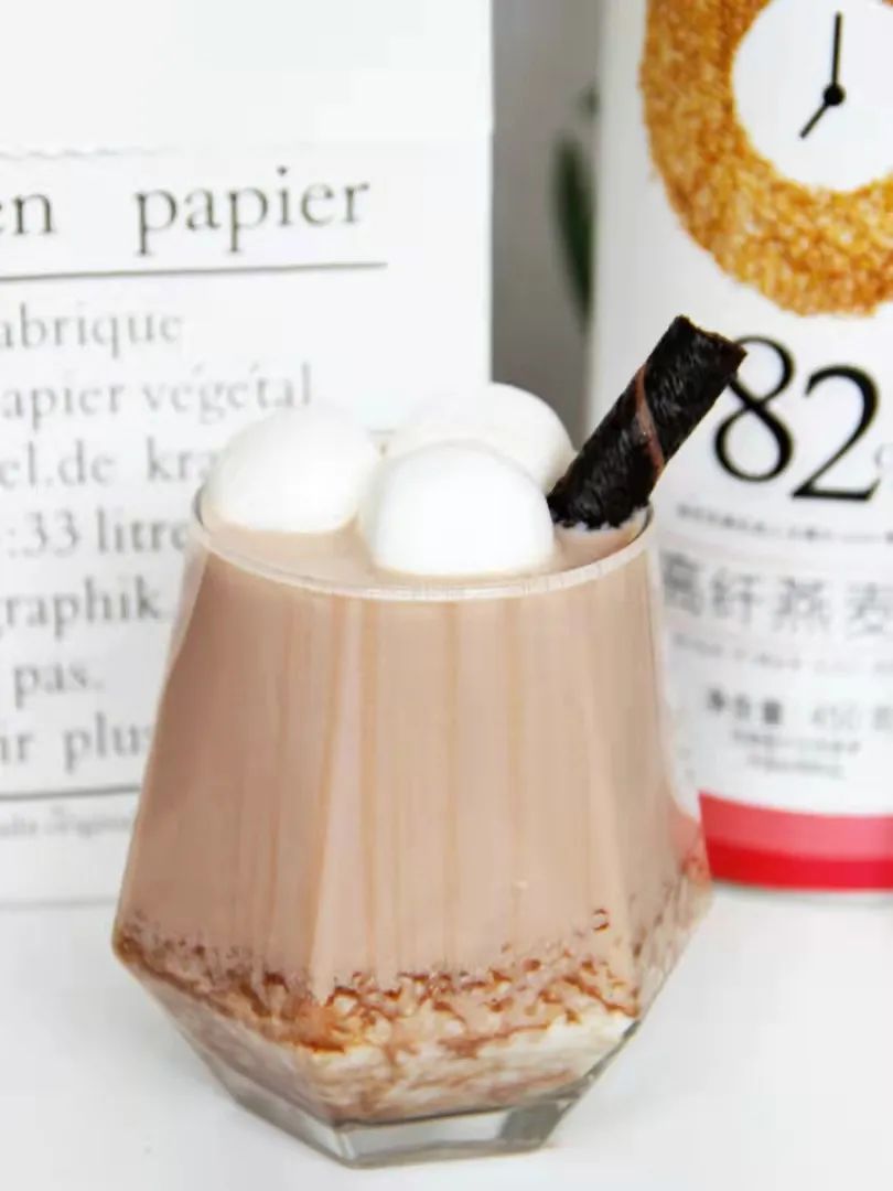 可可粉10克,奶粉10克,代糖5克,西麦高纤燕麦麸45克,牛奶200毫升。棉花糖和巧克力棒可选。