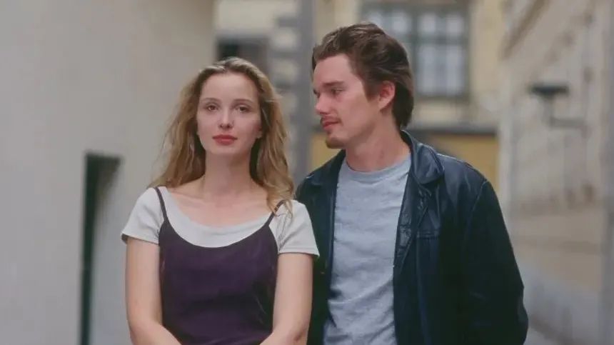 Jesse和Céline在火车上一见钟情,并做出了一个疯狂的举动——一起在维也纳游览一番,即便Jesse翌日便要乘飞机离开维也纳。听起来有些有些荒谬,但Céline接受了Jesse的邀请。