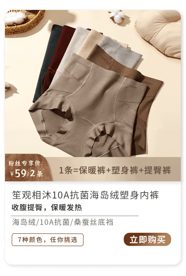 平时随便买条内裤都要大几十甚至上百,洗几次可能就又松又垮,而笙观相沐海岛绒内裤现在才59元2条!7种颜色任选!