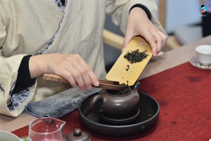 冲泡用水为珍茗山泉,水温为92-100℃(沸水),均温杯、壶1次、润茶2次。