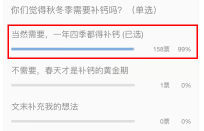 很多人误认为,春天才是补钙的黄金期。上次暖暖发出的投票中,99%的人给出答案:一年四季都得补钙!