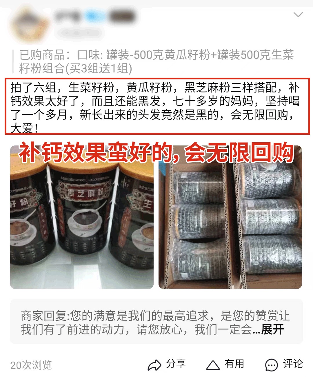“补钙效果好,会无限回购!”
