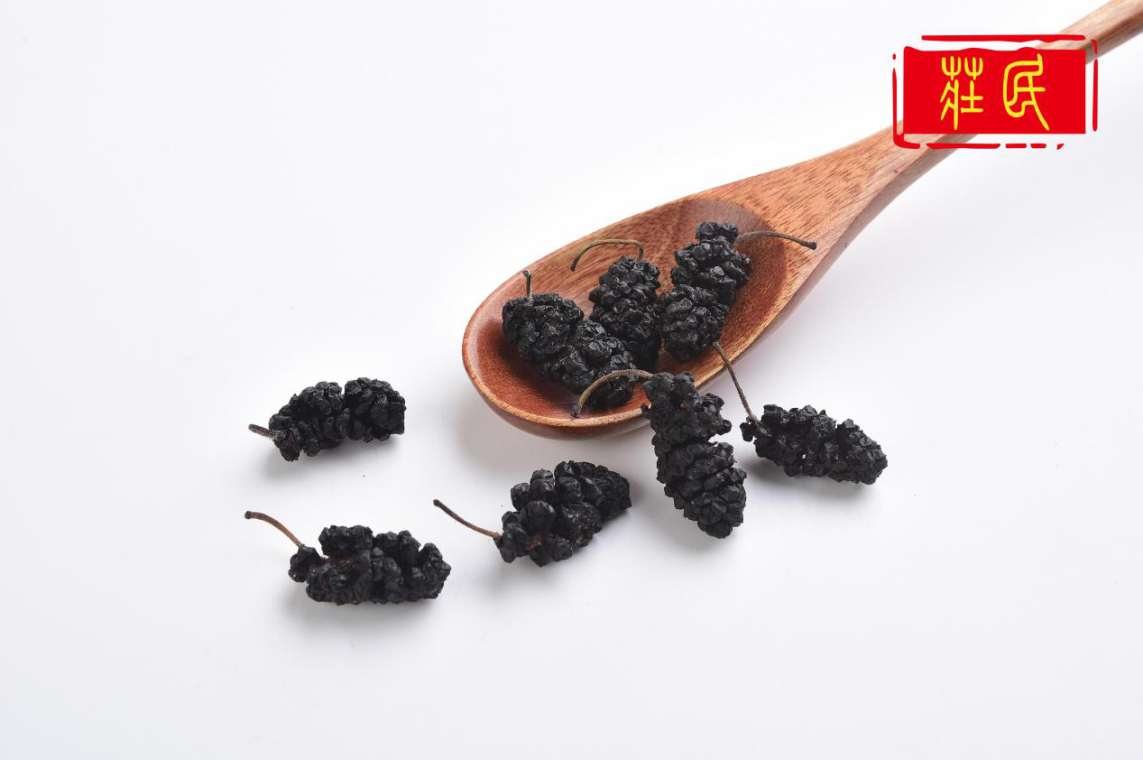 将黑芝麻和桑葚干装入茶蛊中;以适量开水冲泡,浸泡6~7分钟后加入绿茶再浸泡2~3分钟即可饮用。