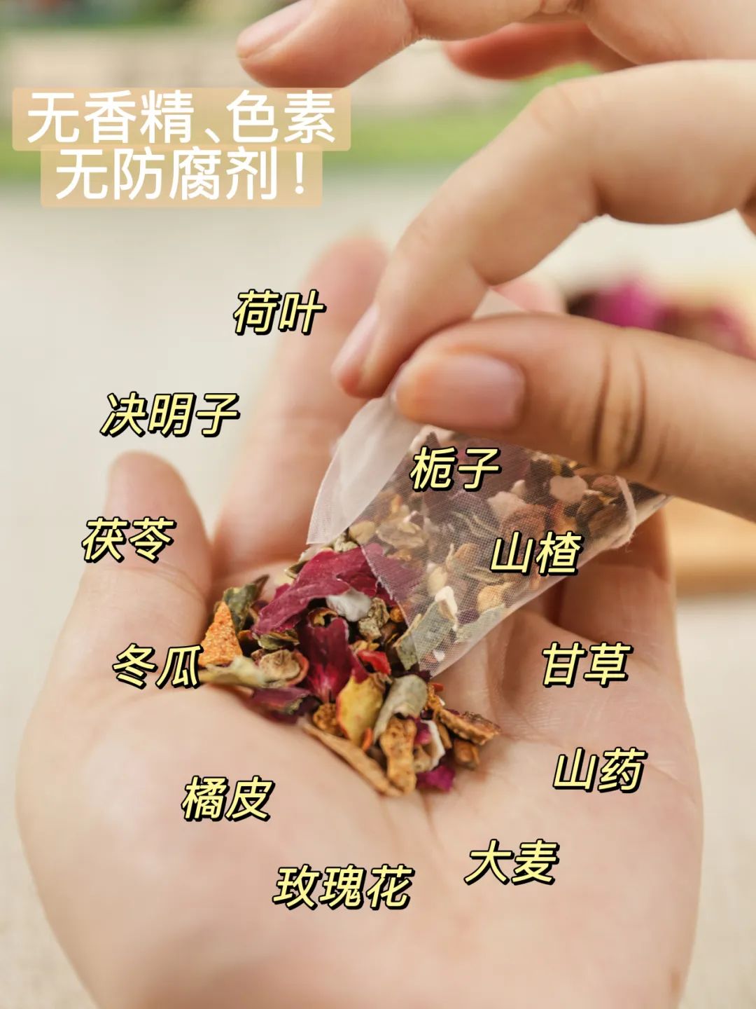 搭配大麦、决明子、冬瓜、橘皮、甘草、重瓣红玫瑰、茯苓、山楂、栀子、山药草本原材!