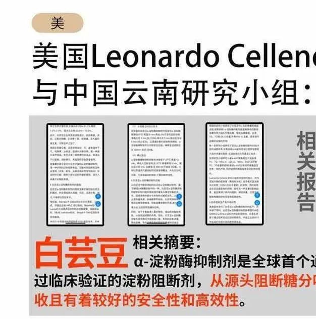 1987年,美国LEONARDO CELLENO实验小组,成功从白芸豆中提取的α-淀粉酶阻断剂,是全球首个通过临床验证的淀粉阻断剂。