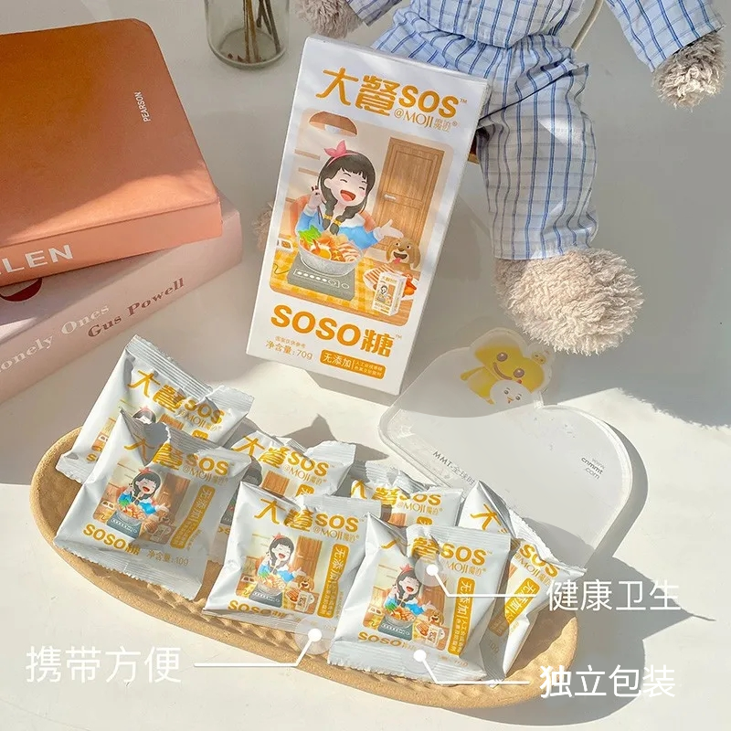 SOSO糖不添加人工合成香精色素及防腐剂,每盒有十袋,都是采用的独立包装,携带方便安全卫生。