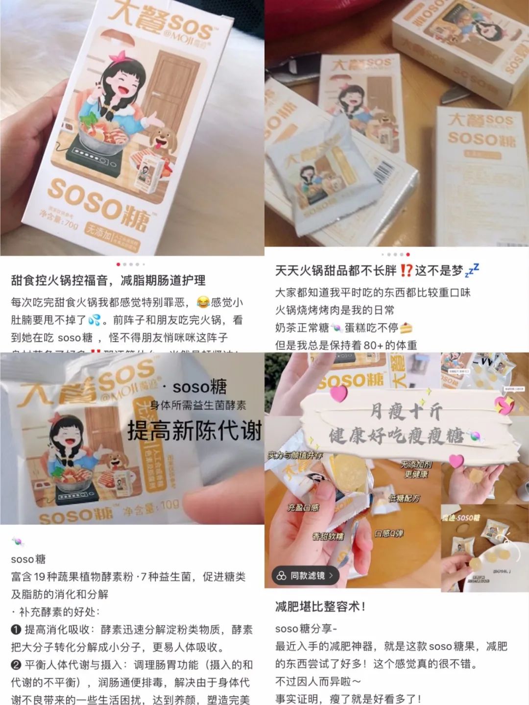 这款SOSO是目前非常火的一款刮油酵素糖,某书、某音上非常的火,火到不少明星都在吃;