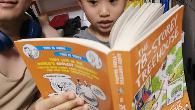 6:05昫昫准时起床,10分钟之内自己完成换衣服、洗漱、便便等工作,昫昫去幼儿园吃早餐,但在6:20左右会坐在餐桌前,边读书,边陪我吃早餐。有时我们会有这样的对话:“昫昫,昨晚上睡得好吗?”“睡得挺好的。Daddy,咱们一会儿送我去幼儿园的路上再聊天好吗,我早上要把这本书读完。”早上的时光里,我们能听到鱼缸的水流声,钟表秒针的滴答声,昫妈放下的口红轻击桌面的声音,餐盘和餐具偶尔发出的碰撞,冲泡完咖啡,咖啡机自动关机的咔哒声。写到这里,落笔时,昫昫5岁6个月,热爱阅读。