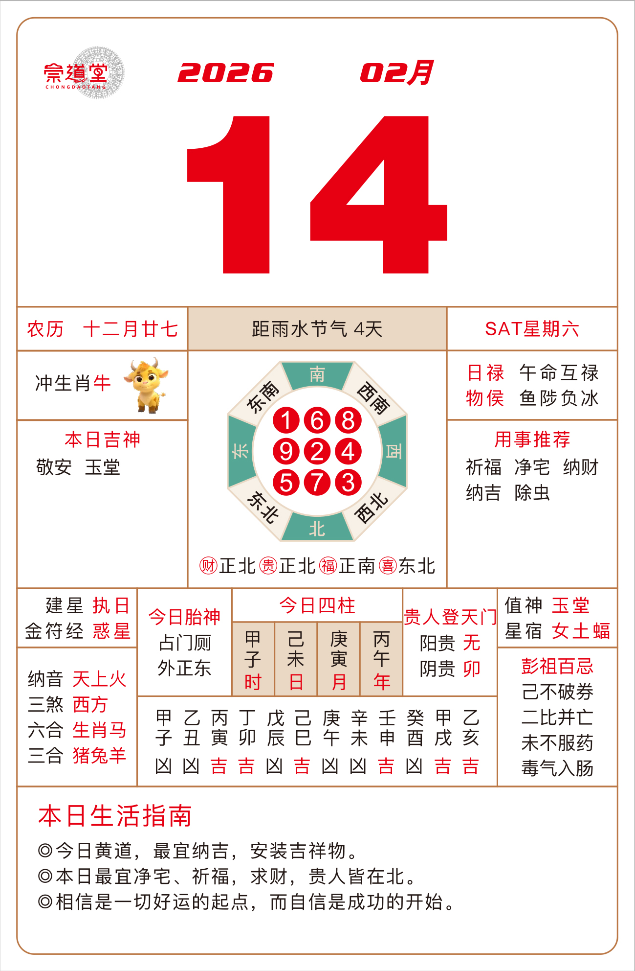 2026年2月26日 农历正月初十 辛未日 冲牛