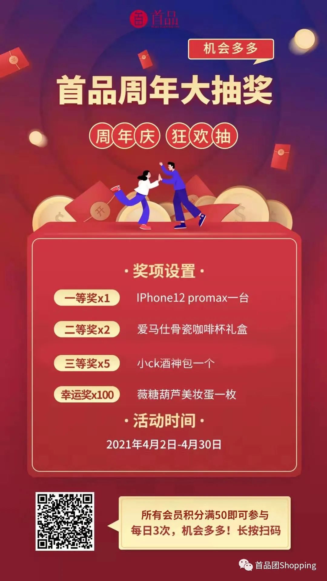 每消费满50积分即可获得一次抽奖机会哟~~~
