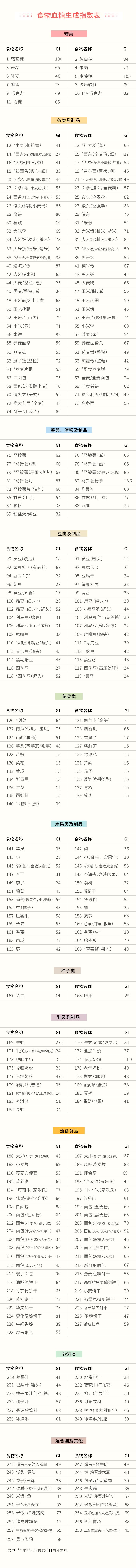 我国最权威,也是唯一的食物GI表是由中国疾病预防控制中心营养与健康所杨月欣研究员在《中国食物成分表2004》中发布,2018年在《中国食物成分表标准版》附表中又进行了更新。