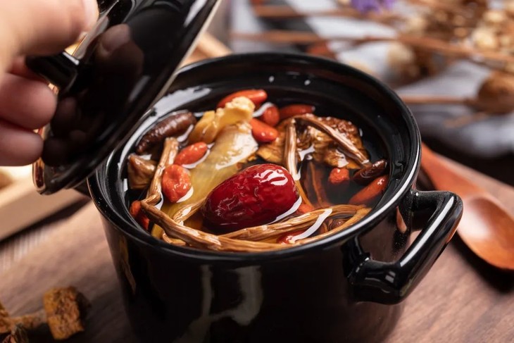 食疗可以选择扶阳温通茶搭配人参茶,健脾、补气。推荐一款药膳——扶阳补气养脾鸡汤