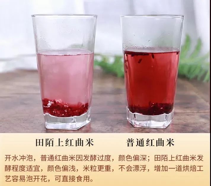 对,您猜的没错!泡出来的水颜色较浅的这碗,才是更适合滋补的红曲米。为了更好的锁住营养,区别于传统批量发酵,古田高汀红曲米采用食用菌种+小灌发酵。
