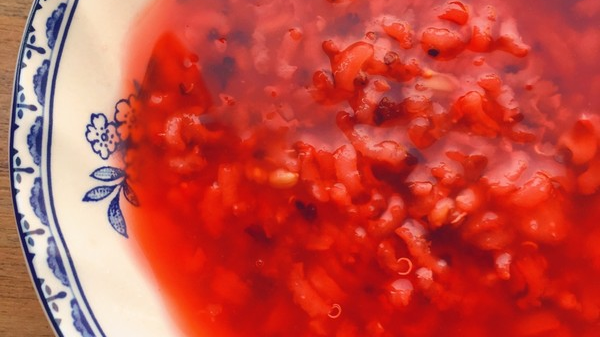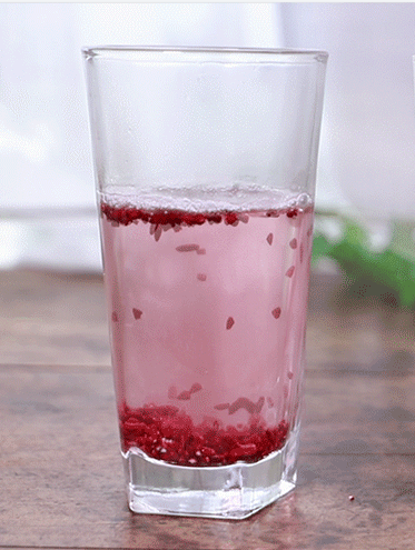 我们的红曲米,入水后米粒开花,喝起来就像是很淡的醪糟味。不甜,微酸混着米香,冲泡两三次后米粒就变得绵软也可直接食用。