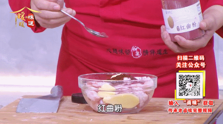 今天暖暖大厨有妙招,只需10克红曲米和3~4克的红曲粉,就能轻轻松松让它颜色红润。