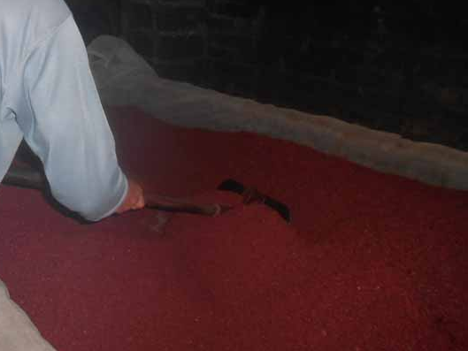 其次,红曲米在达到预期的发酵程度后,会进行醋“灭菌”,普通红曲米一般采用醋精,而我们的红曲米选用的是红曲醋,更放心。