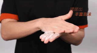 用温水将脸打湿,取适量竹炭洁面乳,在手掌里加水,揉搓出丰富的泡沫。