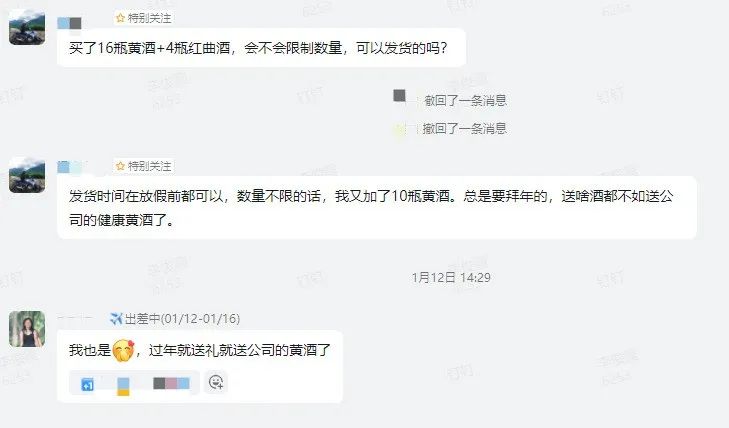 其实是——咱们的黄酒和红曲酒啦!年关将至,公司给小伙伴们放了一波福利,结果黄酒和红曲酒的链接库存空了补、补了空,大家攒着劲要扛二三十瓶酒回家过年~