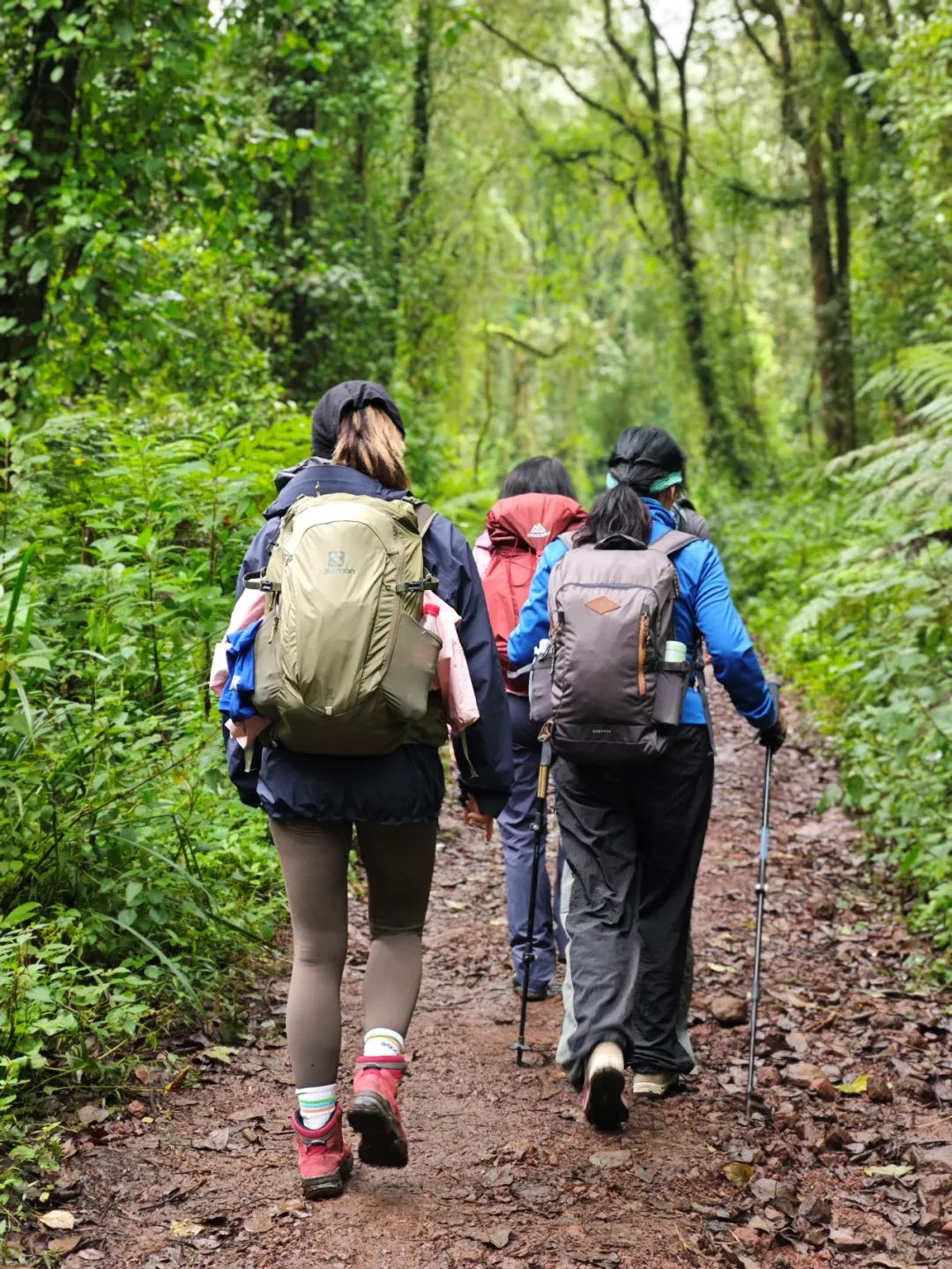 难度上,平均每天爬升1000米左右,路程相对均匀,难度不至于太大,但也不会让人觉得轻松。徒步第一天,是从海拔1800米的热带雨林开始。
