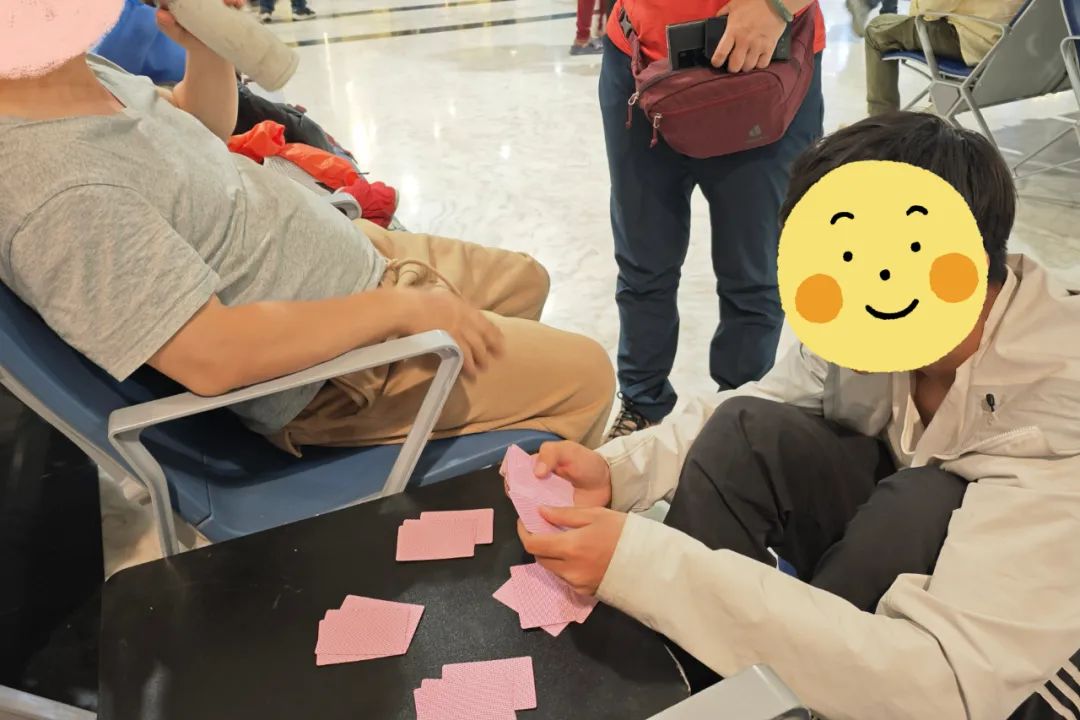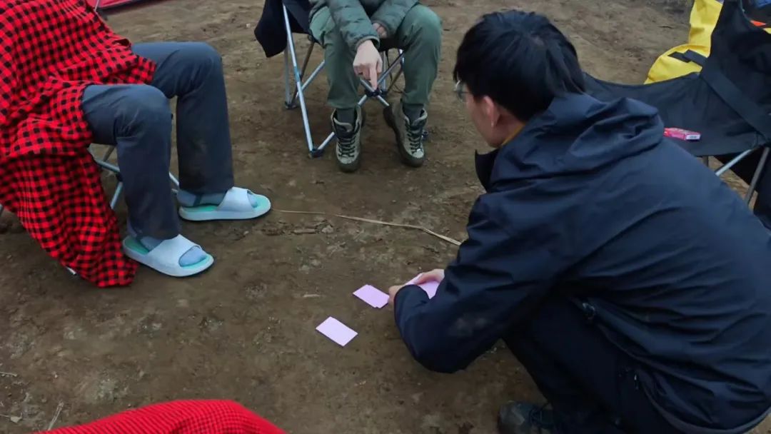 从第一天的营地开始,这两幅扑克就当起了娱乐活动的顶梁柱,既有变魔术这种高端玩法、也有斗地主的群众玩法。三个人打牌,旁边能围上一圈军师,然而在牌技都烂得平等的情况下,打牌的人只能靠”非洲旺不旺自己“这种玄学力量做对决。