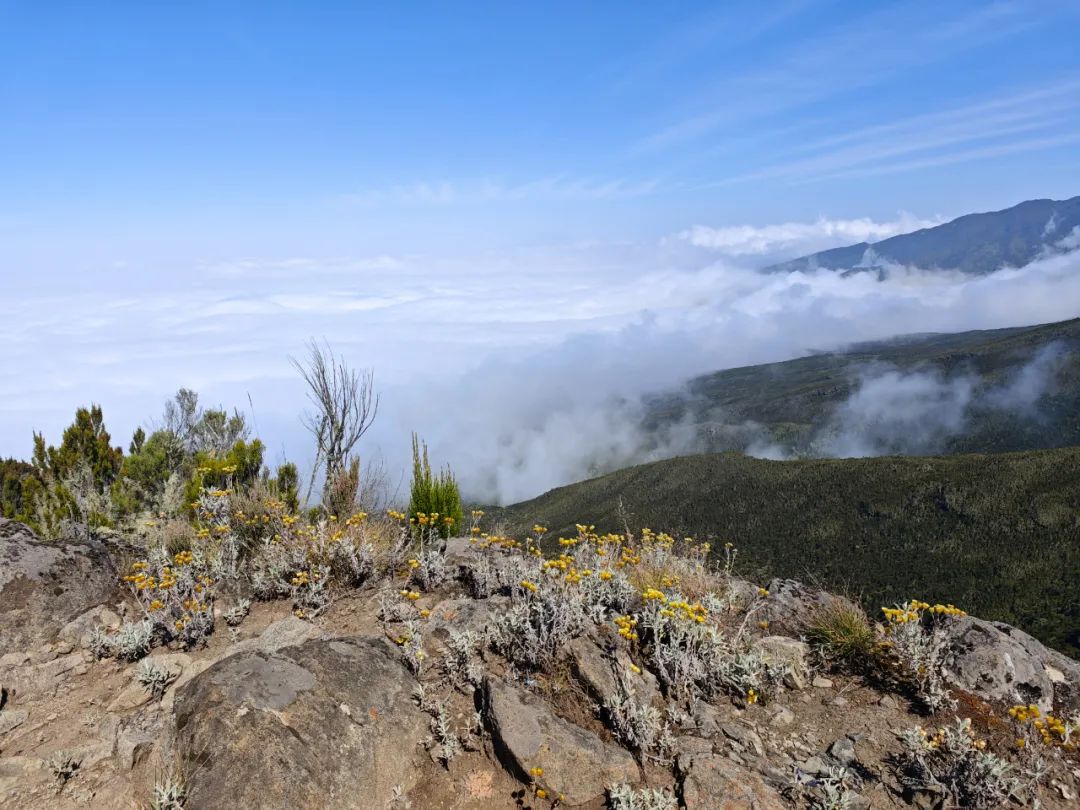 其实第二天的风光算得上惊喜,一路晴空万里,伴随着云海蒸腾,沿途可以观赏各种奇花异草,这里的物种多样性能让植物学家都啧啧称奇。