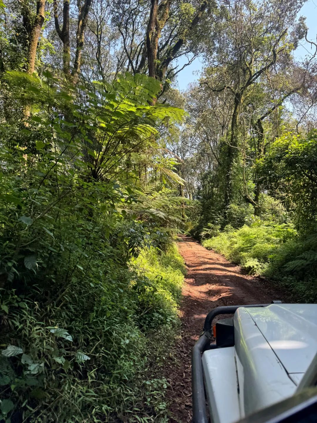 这么边聊边走,很快就到了山脚。最后半小时的路程,我们全员坐上了面包车,之前向导说只能有三个名额坐车,现实却给了一个大大的惊喜,把大家都乐坏了,虽然是十几个人堆坐着挤在车厢里,但所有人都无一例外开心到冒泡。
