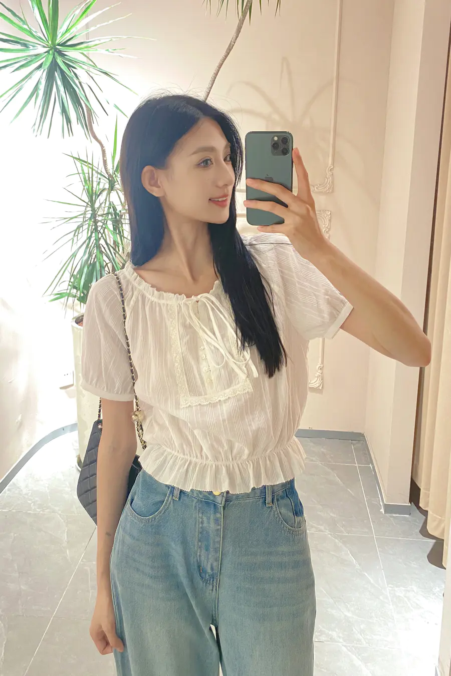 收腰小衫与牛仔 🎈 减龄神器#复古穿搭#