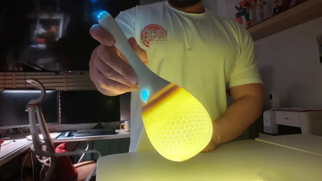 这款灌肠器也可以整体发光,暖黄色灯光可以当作小夜灯使用。
