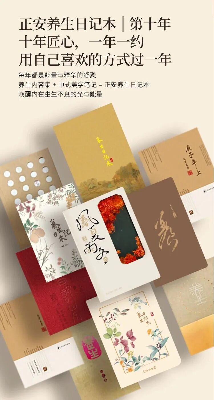 正安养生日记本,一期一会,今年已是第10年啦,十年诚意之作,每一年一本让我们感知物候,拥抱时光,以温暖又有力量的方式,开启美好的丙午年。
