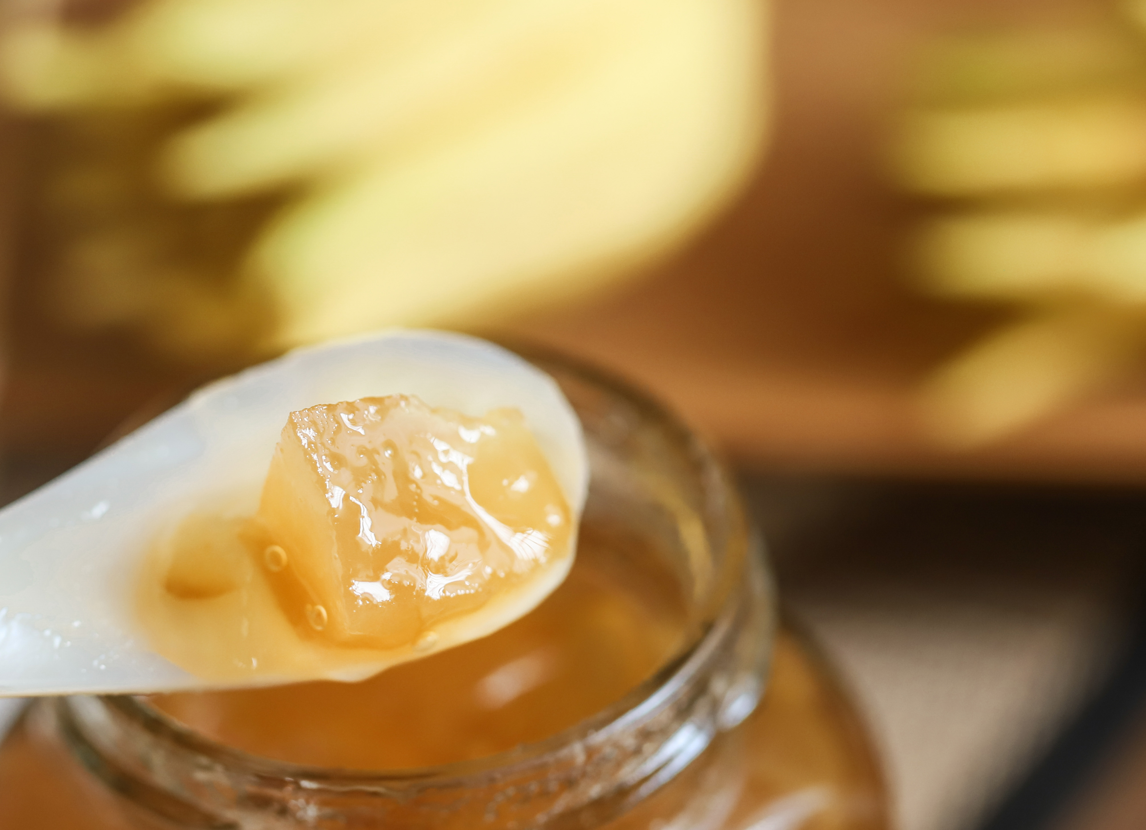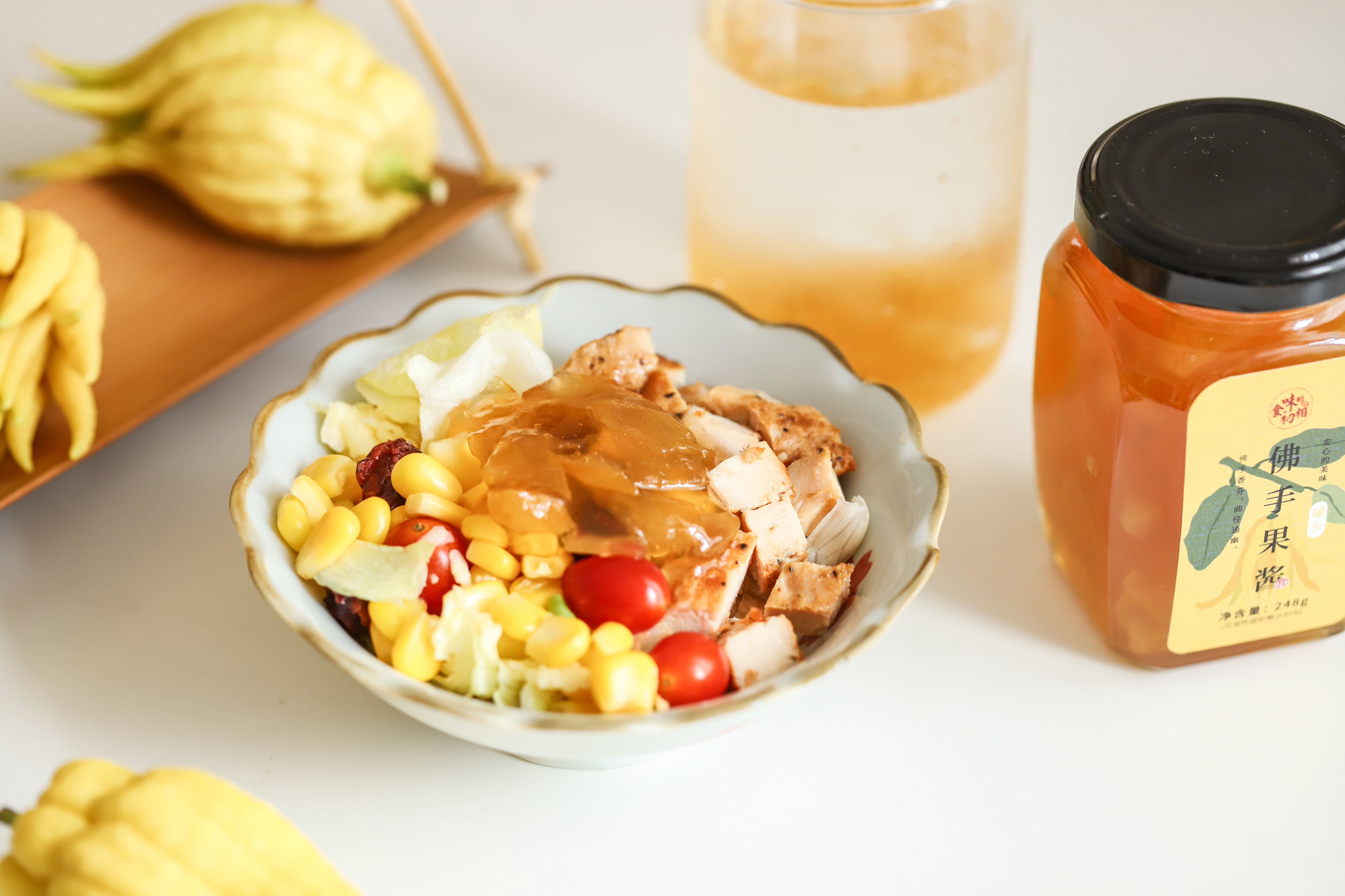 以金佛手鲜果为主要原料,辅以天然蜂蜜,采用非遗技艺熬制而成;